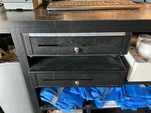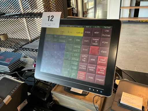 Bestaande touchscreen Intracom, 2x ticketprinter Epson T/M-T88V, 2x barcodescanner Symbol, geldscanner jadrimex BJ-212, 2 diverse kassalades, 2 diverse monitors waaronder LG en Iiyama, compleet met 2x toetsenbord en muis en diverse ticketprijzen
