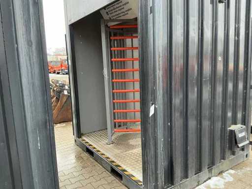 gemonteerd in zeecontainer; voorzien van 1x volledige lange zijde roldeur; voorzien van verlichting; 1x toegangs doorgang; stroomaansluiting 230 Volt; twistlocks; heftruck vorksleuven; not working; incompleet; de koper dient zelf te zorgen voor transport en open vrachtauto met laadkraan lxl