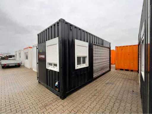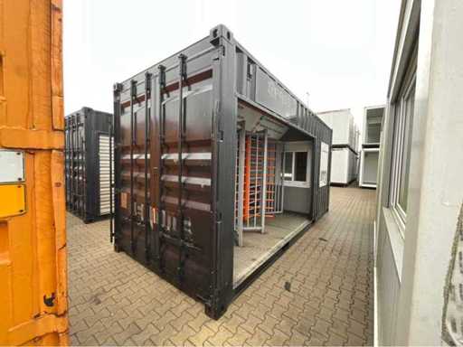 gemonteerd in 20 ft. staal zeecontainer; 2 lange zijde deels voorzien van staal rolluiken; 2x Tourniquet draaideur; capaciteit 1200 personen / uur; met geïntegreerde portiersloge voorzien van 4 vensters met schuiframen / rolluik en een vast bureau; stroomaansluiting 230 Volt; twistlocks; heftruck vorksleuven; de koper dient zelf te zorgen voor transport en open vrachtauto met laadkraan; working condition not verified;