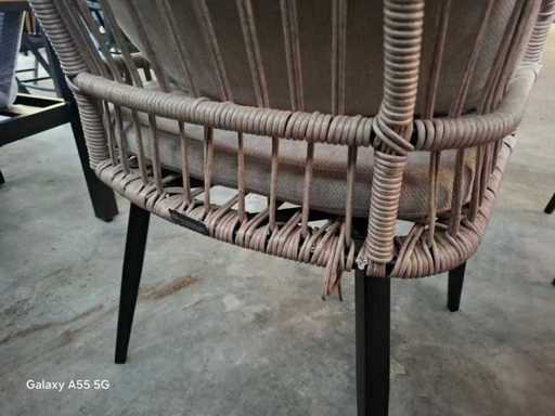 De tuinstoel is bespannen met kunststof rope wat zeer flexibel, sterk en weerbestendig is. Door de flexibiliteit van het rope zal het de rug goed ondersteunen en neemt het de natuurlijke vorm van de rug aan.