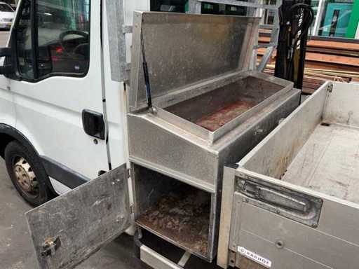 V.v. autolaadkraan (HIA) met bedieningsunit en noodstop; opbergkist/gereedschapskist achter de cabine; imperiaal/rek achter cabine; trekhaak; kipperopbouw met aluminium zijborden; massa rijklaar 2660kg; massa ledig voertuig 2560kg;