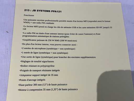 JBSYSTEMS PPA121 Luidspreker