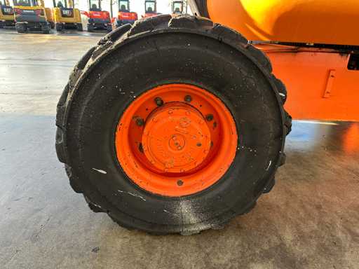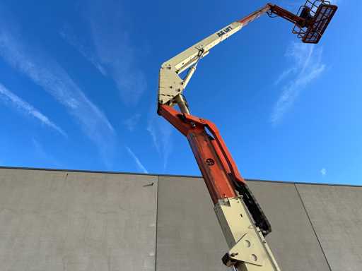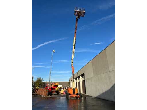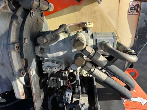 Hydraulische cilinder voor bewegen werkmand lekt olie.