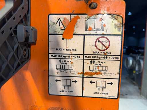 Electric scissor lift from JLG with a working height of 7.72 meters. A compact model with good maneuverability and only 362 operating hours. Lifting capacity up to 230 kg.