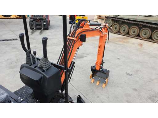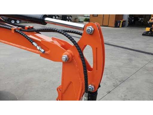 Mini rupsgraafmachine, compleet met graafbak, elektronische ontsteking, rubberen rupsbanden, 360 graden continue rotatie vijfwiel, koppeling en bediening voor de hamer. Nooit 0 uur