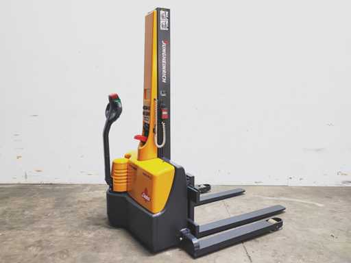 Jungheinrich EMC B10 elektro breedspoor stapelaar v.v. mono mast, breedte tussen de dragers is 970 mm