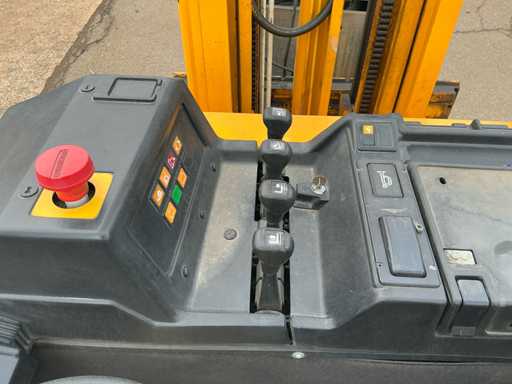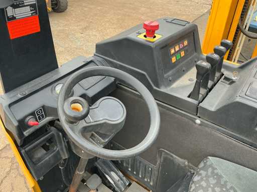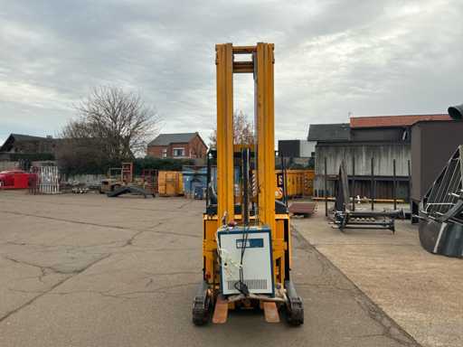 Jungheinrich ETV reachtruck, krachtige en wendbare elektrische magazijntruck, ideaal voor hoge stellingen en nauw gangpadgebruik. Uitgerust met een hoogheffende mast en side-sit bestuurderspositie voor uitstekend zicht en ergonomie. Machine vertoont gebruikssporen maar is constructief degelijk en geschikt voor direct inzetbaar intern transport. Komt met batterij lader.