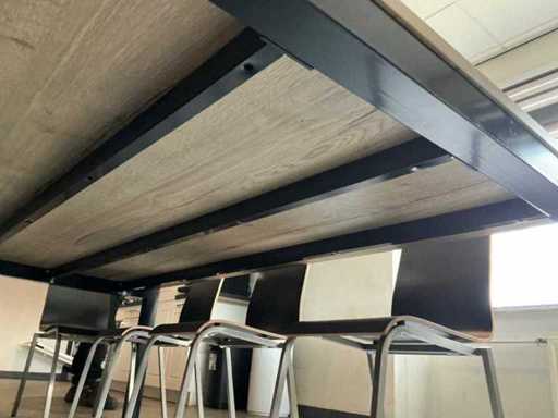 Stapelbare stoelen, afmeting tafel 240x160cm.