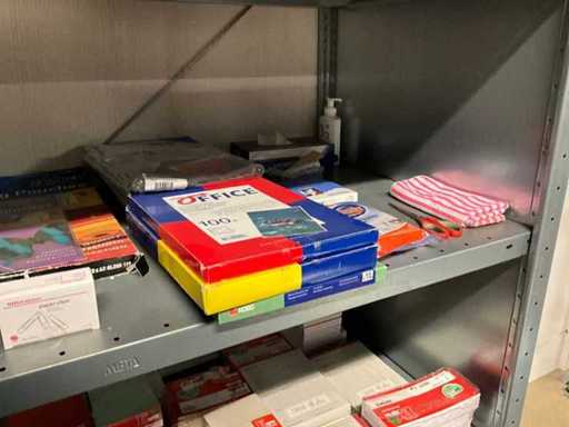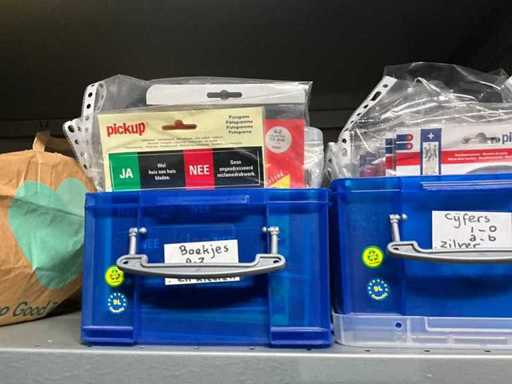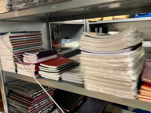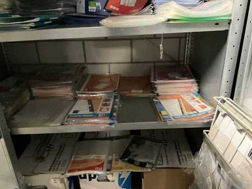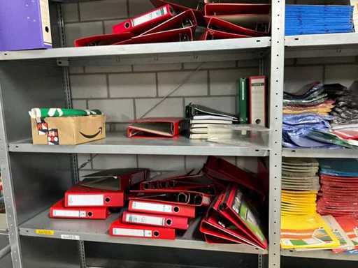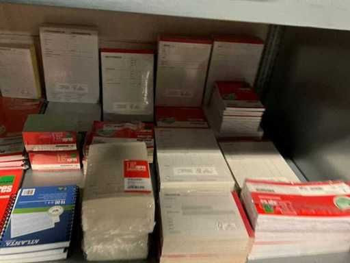 Waaronder ordners, perforators, plakletters, insteekhoezen, blocnotes en schriften. Let op! Kavel bevindt zich op de eerste etage, er is geen lift aanwezig.