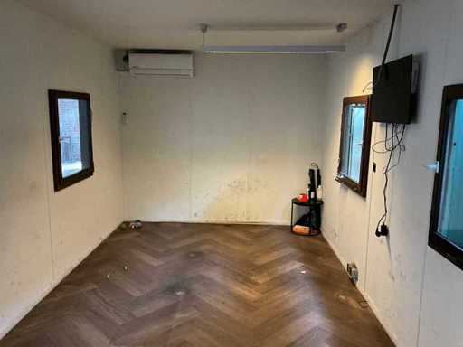 Kantoorunit 20ft v.v. aircounit, 1 loopdeur, 5 ramen, schakelkast
