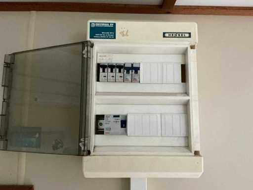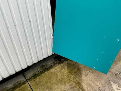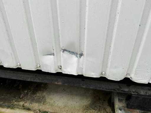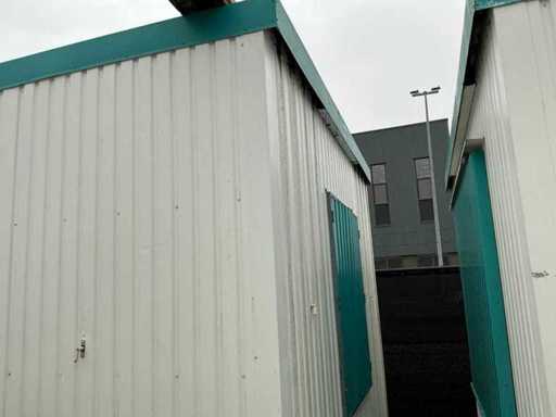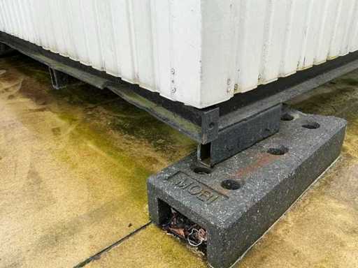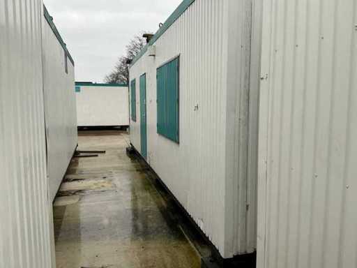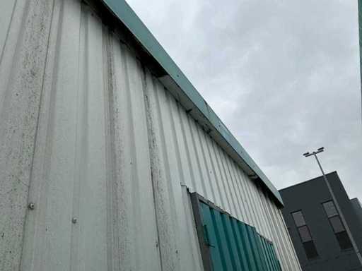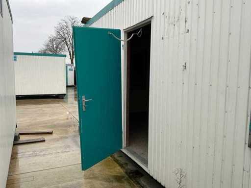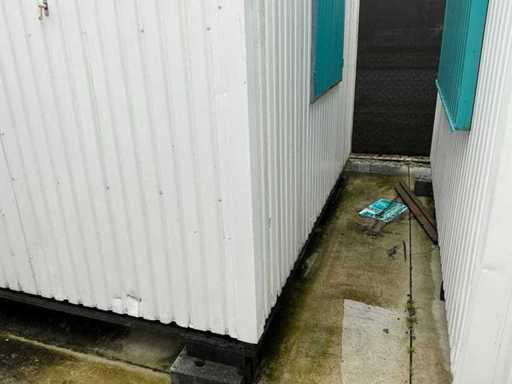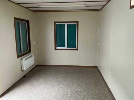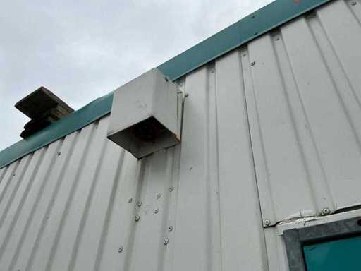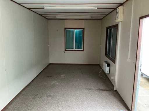 1x loopdeur; 2x elektrische kachel; verlichting; 5x stopcontact; aansluiting 400 Volt 32 Ampère; 4x schuifraam en 1x verluchtingsraam; voorzien van 4 hijsogen; scharnier deur beschadigd, afgebroken.