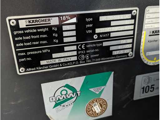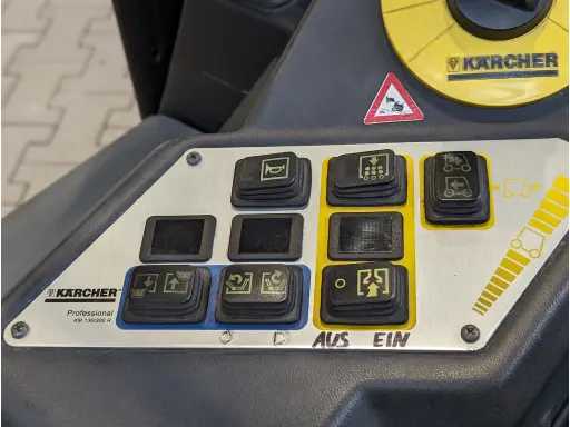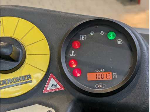 Functionele conditie; Videolink: https://youtu.be/cP7u4s067hE en https://youtu.be/QHe4iMTggMM; Kärcher artikelnummer 1.186-121.0; met een beschermend dak; Prijs: €59.000; Maximale oppervlakte-output: 13.000 m²/u; Werkbreedte (mm) 1000; Werkbreedte met 1 zijborstel (mm) 1300; Afvalcontainer (l) 300; Beoordelingsvermogen (%) 18