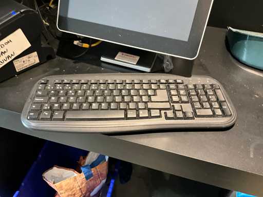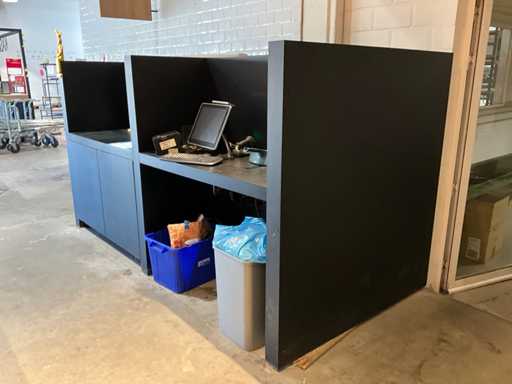 Voorzien van ticketprinter Epson TM-T88VI en toetsenbord, compleet met houten meubel voorzien van 2 deuren, afmeting totaal: 295x145x162cm