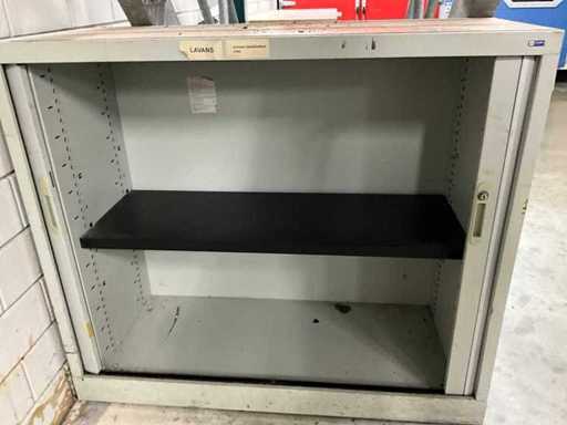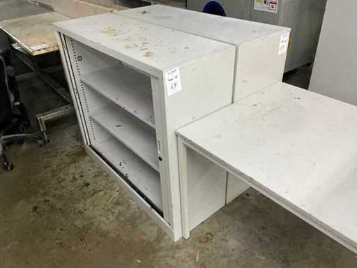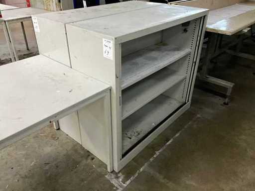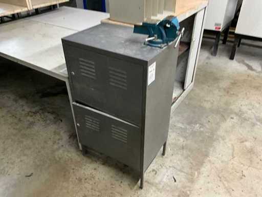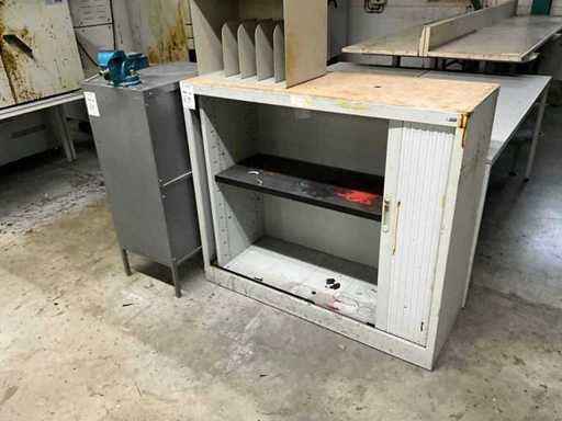2x schuifdeur, afsluitbaar (2x met sleutel), 1x kast 400x600x1050mm met bankschroef