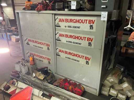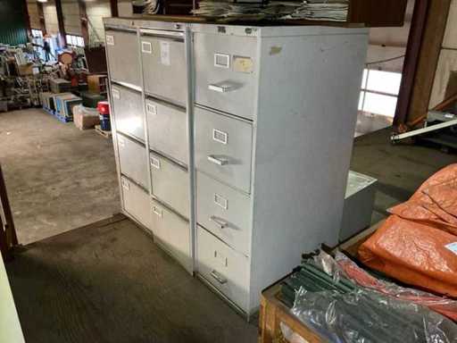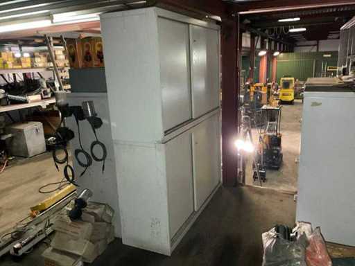 Waaronder 3x ladenkast 44x71x135cm, 2x schuifdeurkast 150x48x97cm, 1x schuifdeurkast 200x50x135cm. Inhoud niet inbegrepen, zonder sleutel.