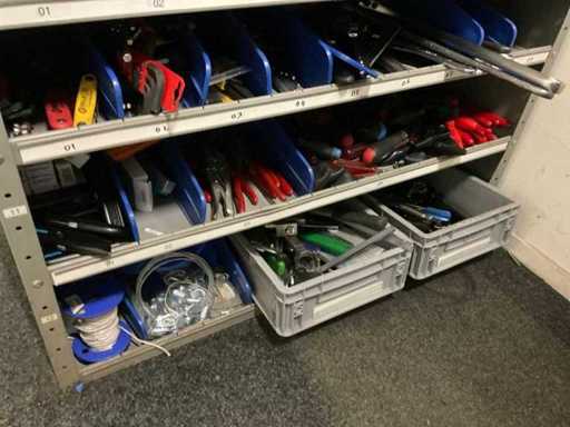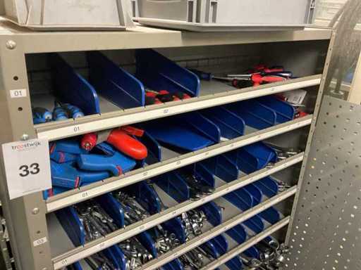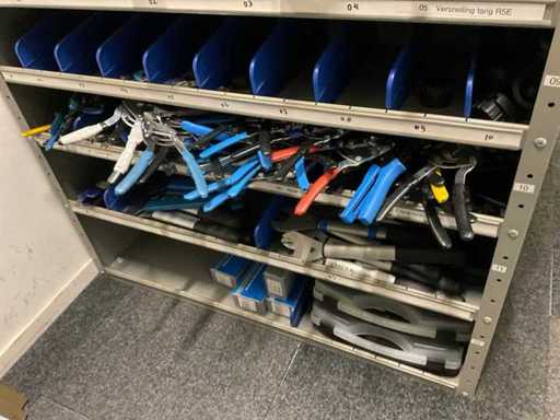 Bestaande uit: ring-steeksleutels, schroevendraaiers, inbussleutels, tangen, etc. Inclusief: (2x) kast.