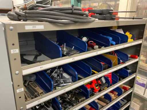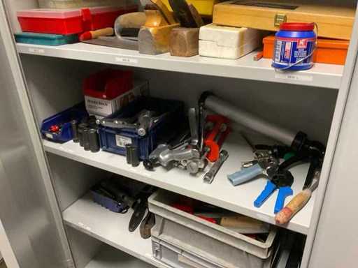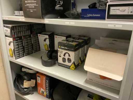 Bestaande uit: gehoorbeschermers, handschoenen, rolbandmaten, tangen, etc. Inclusief: (6x) diverse kasten.