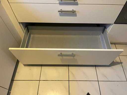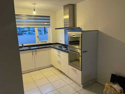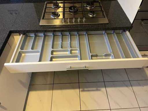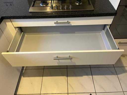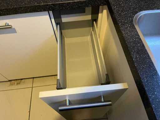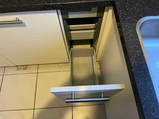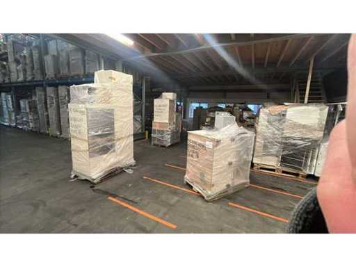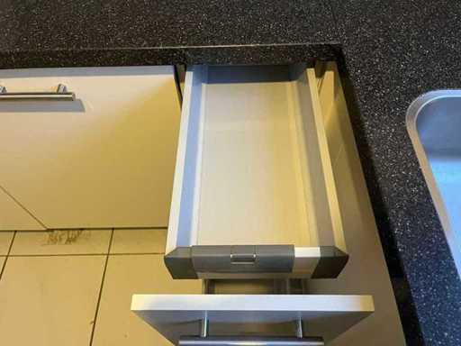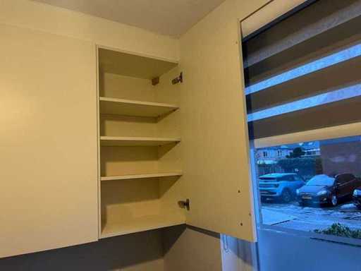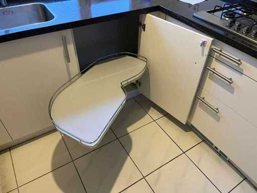 Conditie: gebruikt; afmetingen linkerdeel circa 211x60x232 cm; afmetingen middelste deel circa 263x60x90 cm; afmetingen rechterdeel circa 245x60x160 cm; reeds gedemonteerd en ingepakt op pallets. (afstapelen, omruilen of statiegeld per pallet); Pallets zijn niet inbegrepen; statiegeld betalen bij afhalen, of pallets afstapelen; werkblad niet ingepakt op pallets (25-2DE-02992)