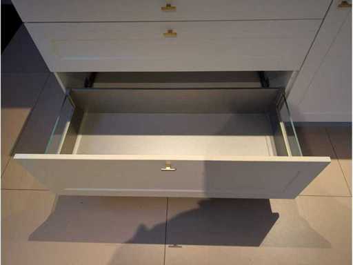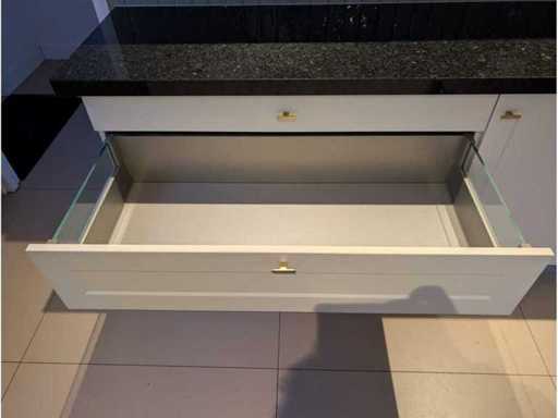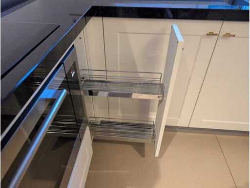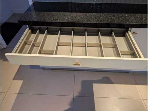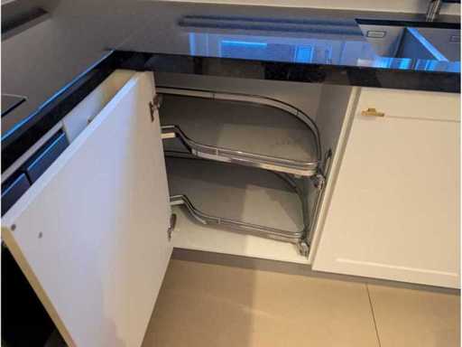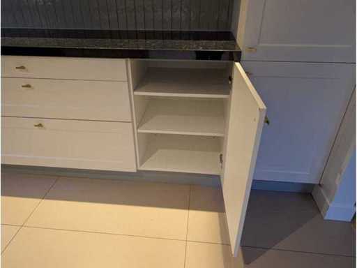 Conditie: gebruikt; afmetingen linkerdeel circa 247x60x90 cm; afmetingen middelste deel circa 248x60x90 cm; afmetingen rechterdeel circa 250x60x223 cm; reeds gedemonteerd en ingepakt op pallets. (afstapelen, omruilen of statiegeld per pallet); Pallets zijn niet inbegrepen; statiegeld betalen bij afhalen, of pallets afstapelen; werkblad niet ingepakt op pallets (25-2DE-02892)
