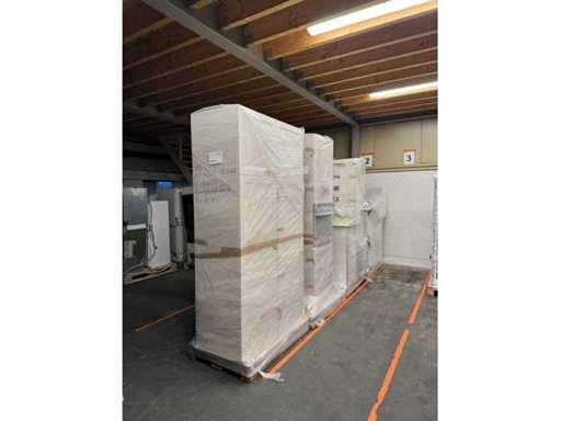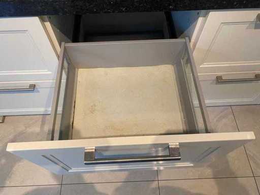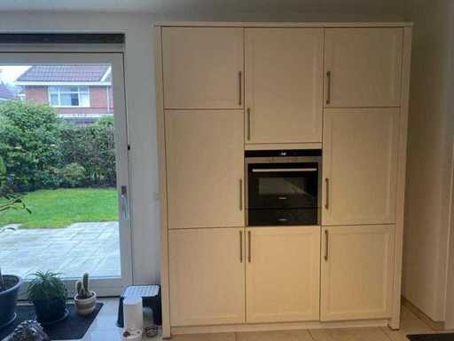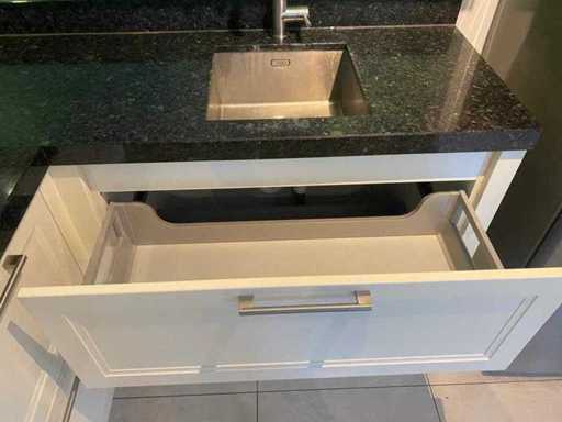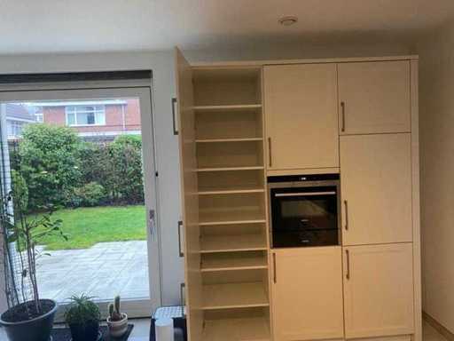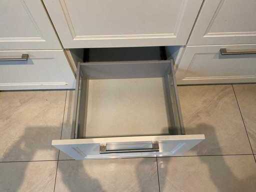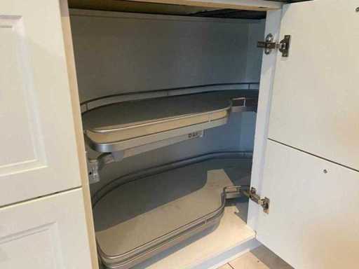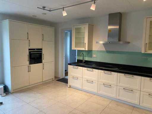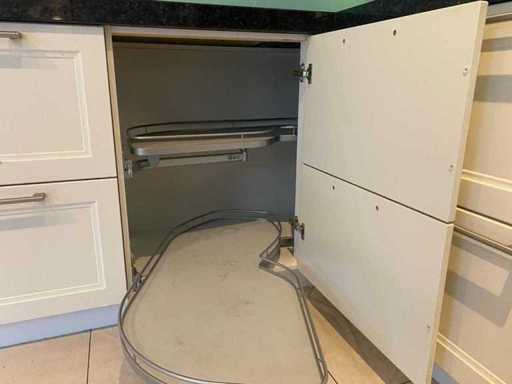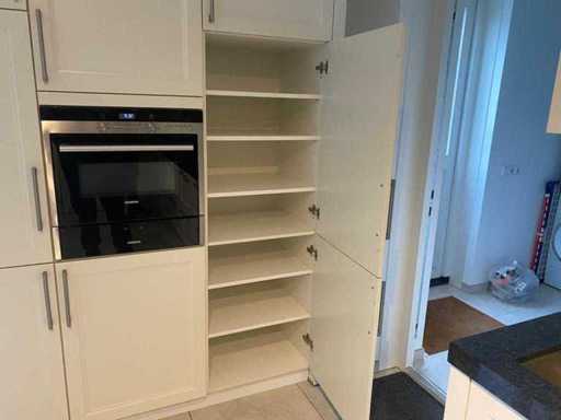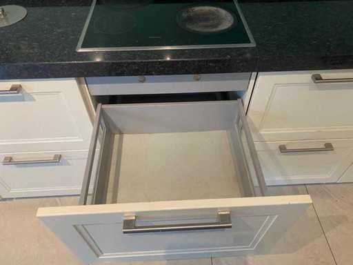 Conditie: gebruikt; met warmhoudlade Siemens; Afmetingen linkerdeel circa 371x60x90 cm; afmetingen rechterdeel circa 170x60x90 cm; afmetingen kastenwand circa 180x60x241 cm; reeds gedemonteerd en ingepakt op pallets. (afstapelen, omruilen of statiegeld per pallet); Pallets zijn niet inbegrepen; statiegeld betalen bij afhalen, of pallets afstapelen; werkblad niet ingepakt op pallets (25-2DE-02688)