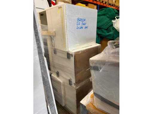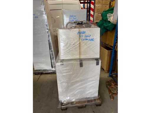 Conditie: gebruikt; reeds gedemonteerd en ingepakt op pallets. (afstapelen, omruilen of statiegeld per pallet); Pallets zijn niet inbegrepen; statiegeld betalen bij afhalen, of pallets afstapelen; werkblad niet ingepakt op pallets (26-RTT-03271)