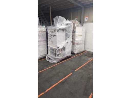Conditie: gebruikt; afmetingen kastenwand circa 125x60x168 cm; reeds gedemonteerd en ingepakt op pallets (afstapelen, omruilen of statiegeld per pallet); pallets zijn niet inbegrepen; statiegeld betalen bij afhalen, of pallets afstapelen; werkblad niet ingepakt op pallets (25-2DE-03086)