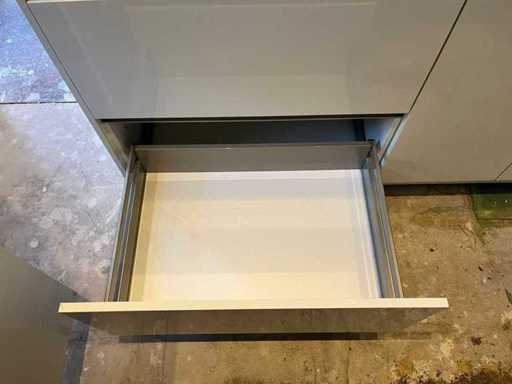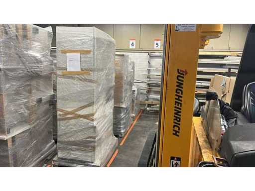 Conditie: gebruikt; afmetingen linkerdeel circa 187x60x220 cm; afmetingen rechterdeel circa 390x58x90 cm; reeds gedemonteerd en ingepakt op pallets. (afstapelen, omruilen of statiegeld per pallet); pallets zijn niet inbegrepen; statiegeld betalen bij afhalen, of pallets afstapelen; werkblad niet ingepakt op pallets (26-2DE-03651)