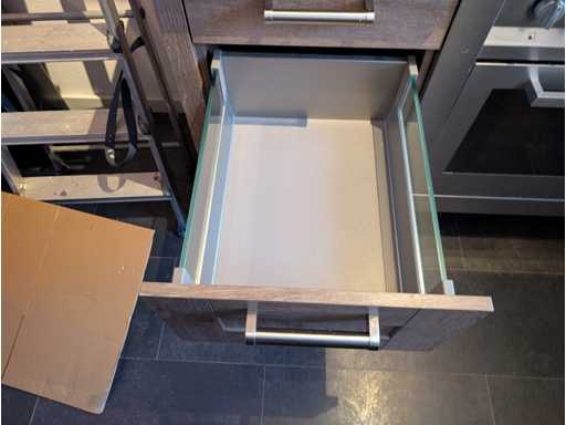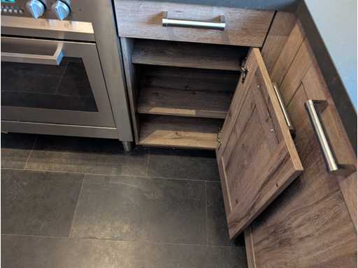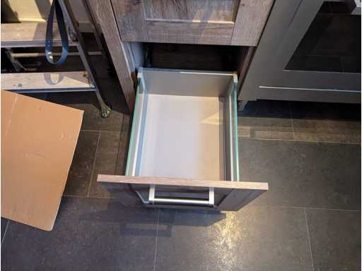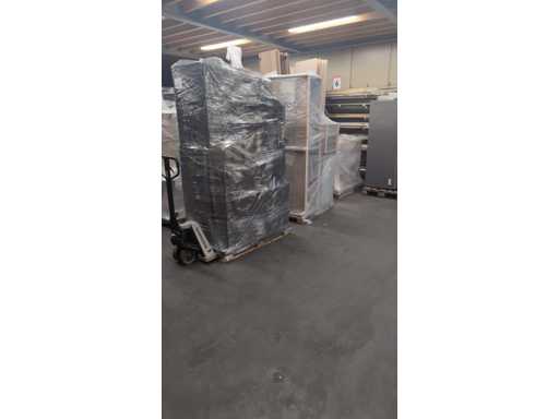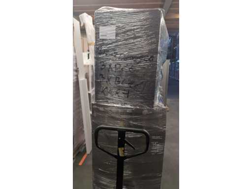 Conditie gebruikt; Afmetingen linkerdeel lxb ca. 236x60cm; afmetingen tussenstuk lxb ca. 242x60 cm; afmetingen rechterdeel lxb ca. 250x60 cm; Reeds gedemonteerd en ingepakt op pallets. (afstapelen, omruilen of statiegeld per pallet); Pallets zijn niet inbegrepen; statiegeld betalen bij afhalen, of pallets afstapelen; werkblad niet ingepakt op pallets