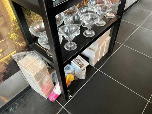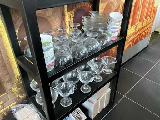 Stalen frame, met inhoud diverse coupes en ijskommen