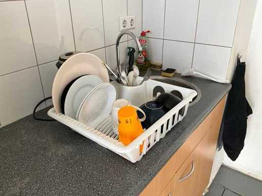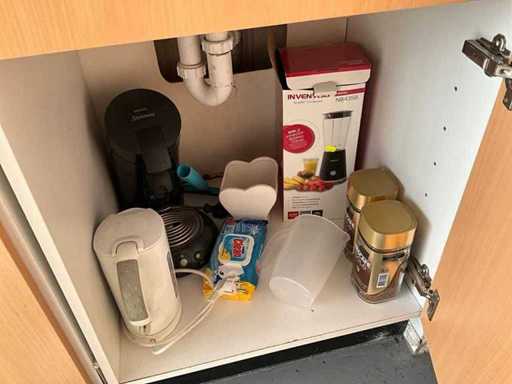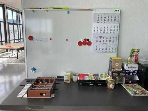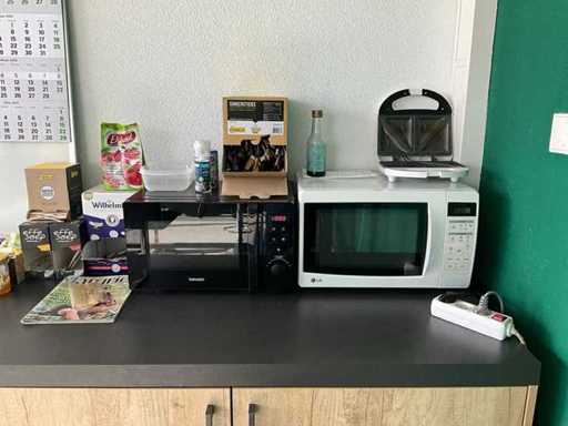 Betreft de inhoud van de keuken, waaronder: Tomado magnetron, LG MS2049F combimagnetron, whiteboard 120x90cm, minitafelvoetbal, waterkoker, Senseo koffiezetapparaat, etc