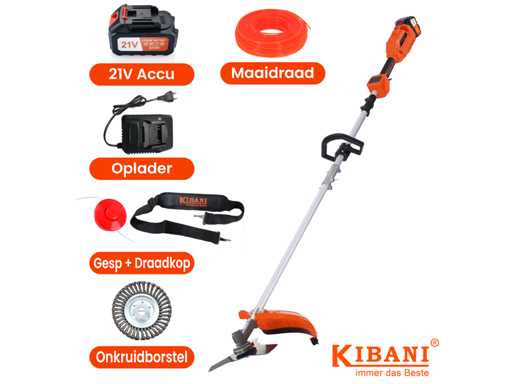Kibani Accu Bosmaaier - Incl. 20V Accu en Oplader - Elektrische Bosmaaier - met 15CM Onkruidborstel - Grastrimmer - Kantenmaaier