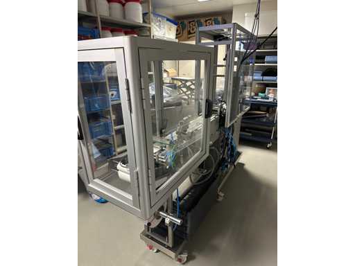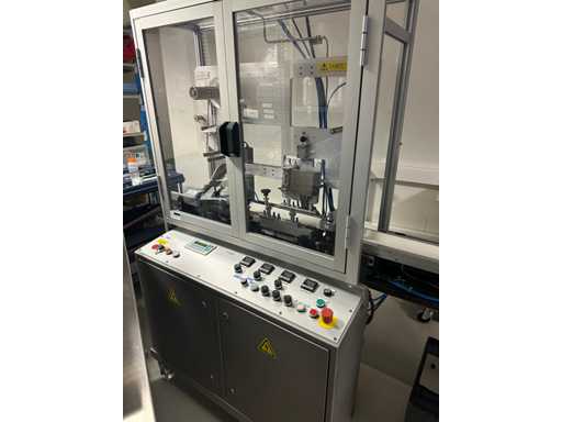 Semi-automatische blistermachine voor het thermovormen, vullen, sealen en snijden van blisterverpakkingen voor farmaceutische, medische of cosmetische producten.