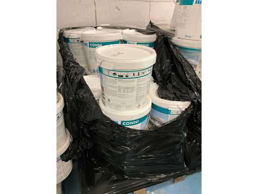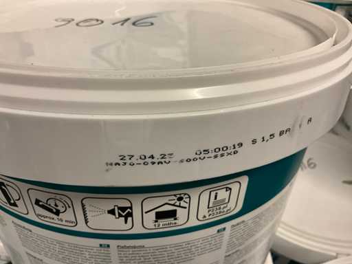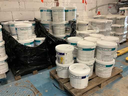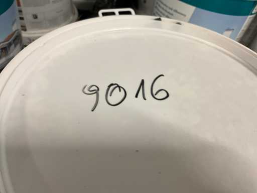 Waaronder ref. 9016 en 9010, liggende op 3 pallets.