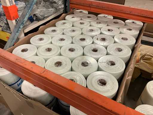 Circa 84 rollen, liggende op 2 pallets in kartonnen box en enige rollen los.