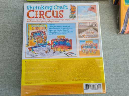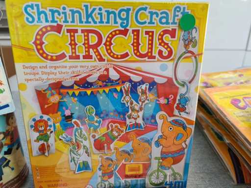 1 x shrinking craft (krimppapier inkleuren en bakken en je eigen circus samenstellen)