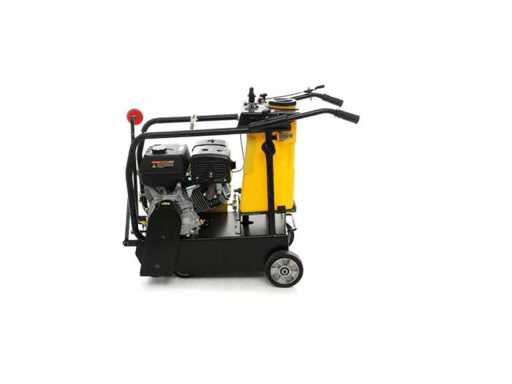 Professioneel apparaat voor het recht sneden van asfalt en beton. Uitgerust met LONCIN 390F-motor en riemaandrijfsysteem.