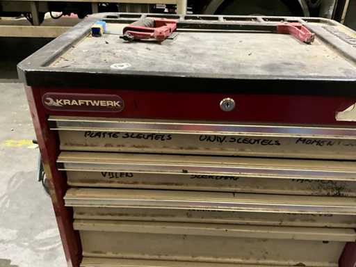 Op kar gemonteerd Compleet met inhoud waaronder enig steeksleutels en schroevendraaiers