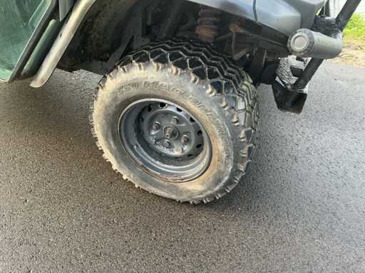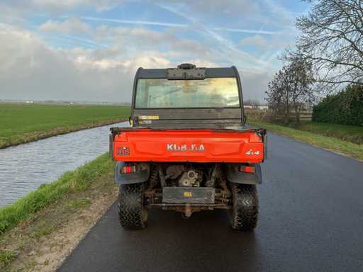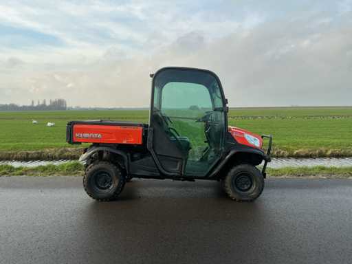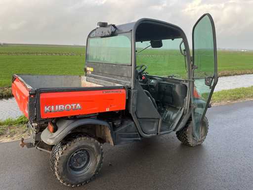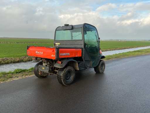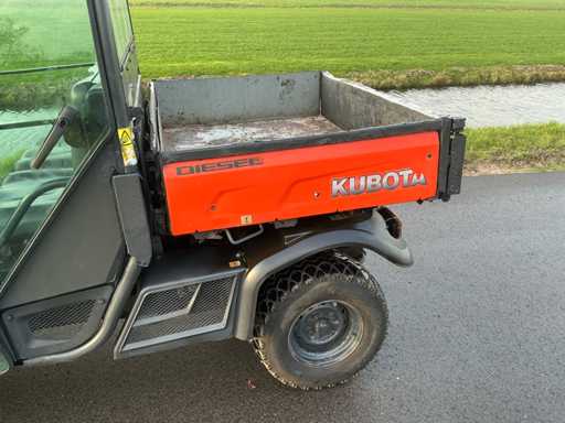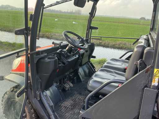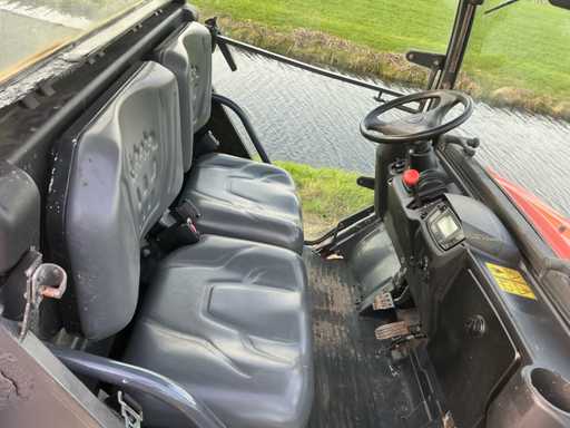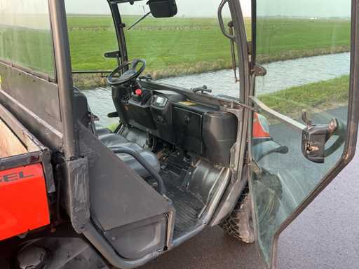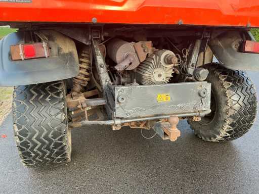 Beschikt over 3 cilinder Kubota dieselmotor, 4WD aandrijving, hydraulische kiepbak, 1000kg trekvermogen, trekhaak, variabele hydrostatische transmissie en hydraulische stuurbekrachtiging.