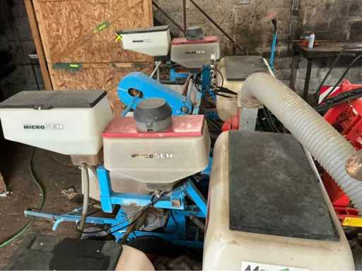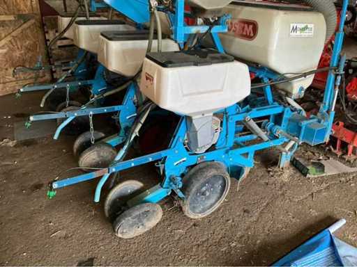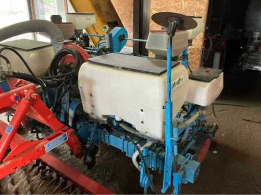 Compositie: Rotatiejag Kuhn 303 Monosem 4-rijige maïszaaimachine Dickey-John Zaaicontroller Lokale mesttank Wireworm- en slug-besturingsopties Widen: spuitboom + voorste tank met doseringsregeling