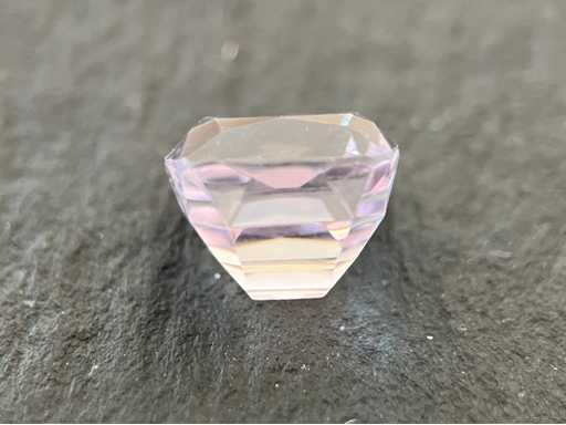 Edelsteen: Kunziet; Aantal: 1 stuk; Slijpvorm: Kussen vorm geslepen; Gewicht (carat): 8.04 carat; Kleur: Paars; Zuiverheid: Zeer hoge zuiverheidsgraad; Slijpkwaliteit: Heel mooi; Conditie: Nieuw; Verpakking: Edelsteendoos; Toelichting: De kwaliteit is overgenomen van het rapport behorend bij item.