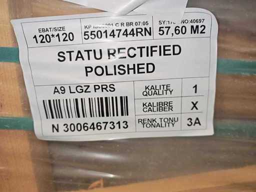Kutahya Statu Gepolijst 120x120 cm Tegel 57,6 m²
