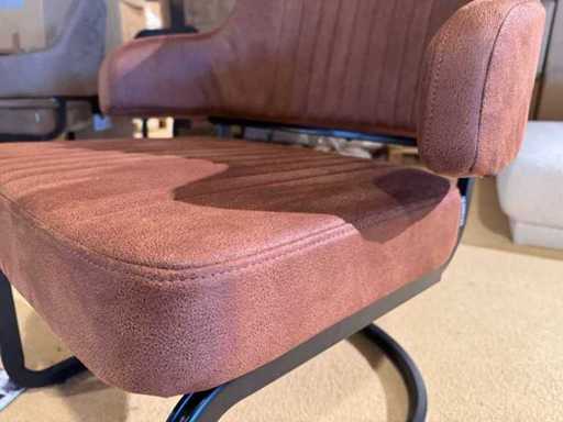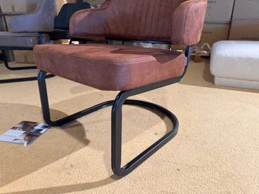 Fauteuil - cognac microvezelstof - metalen onderstel