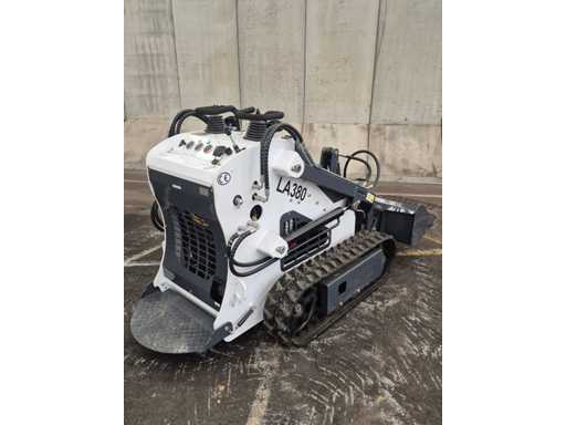 LADYS LA380 minishovel – ongebruikt – luchtgekoelde dieselmotor – elektrische start – voorwielaandrijving – hydraulisch kiepsysteem met dubbele hefcilinders – werksnelheid 0–8 km/u – klimvermogen 25% – bodemvrijheid 200 mm – draaicirkel 2500 mm – bediening via hendels – uitgerust met werklampen, waarschuwingssignaal en accubescherming – geschikt voor lichte laad- en loswerkzaamheden – compact ontwerp voor werken in beperkte ruimtes – eenvoudig te bedienen en CE-gecertificeerd