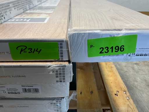 Mixpallet met diverse soorten laminaat – ongeveer 14 pakken, goed voor circa 30 m².
