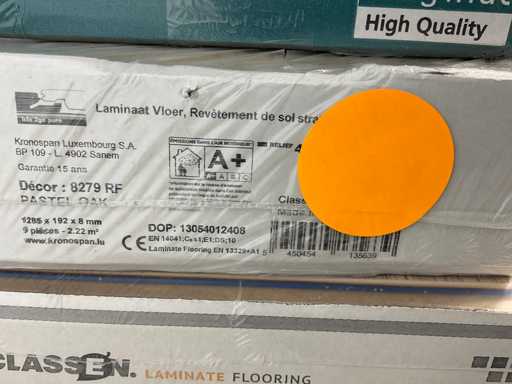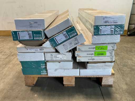 Mixpallet met diverse soorten laminaat – ongeveer 21 pakken, goed voor circa 46 m².