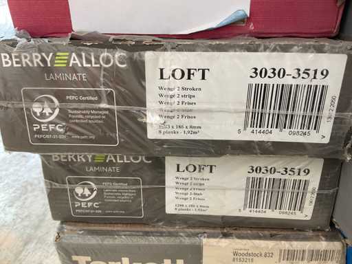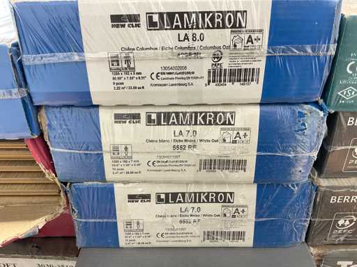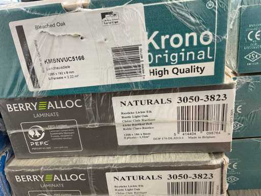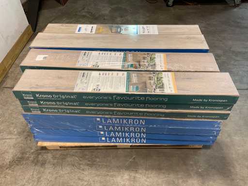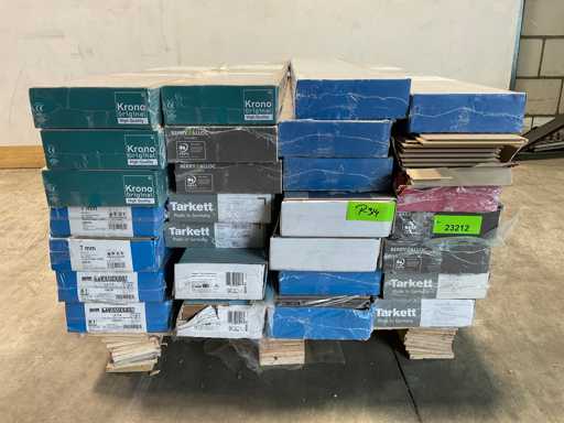 Mixpallet met diverse soorten laminaat – ongeveer 28 pakken, goed voor circa 62m².