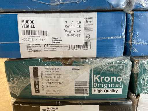 Mixpallet met diverse soorten laminaat – ongeveer 35 pakken, goed voor circa 77m².