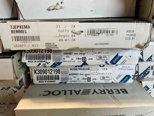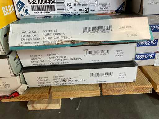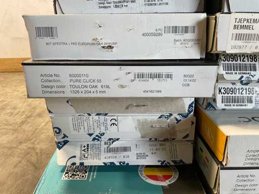 Mixpallet met diverse soorten laminaat – ongeveer 44 pakken, goed voor circa 96m².