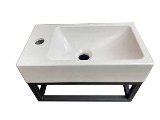 40cm Wit fonteinset - Cubo - wit smc wasbak - rechthoekige steun in mat zwart aluminium - voor montage aan de muur - kraan, krepin en sifon niet inbegrepen - met bevestigingsmateriaal inbegrepen