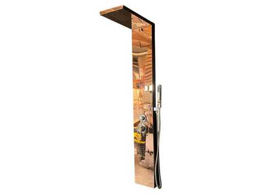 Design douchezuil - Kleur: Rose gold- Materiaal: Aluminium - Hoogte 145cm x Breedte 20cm x Diepte 6cm - Waterjetvlakken - Flexibel en handdouche (150cm) - Regendouche - Mixer, richtingsventiel - MS02-Rose gold